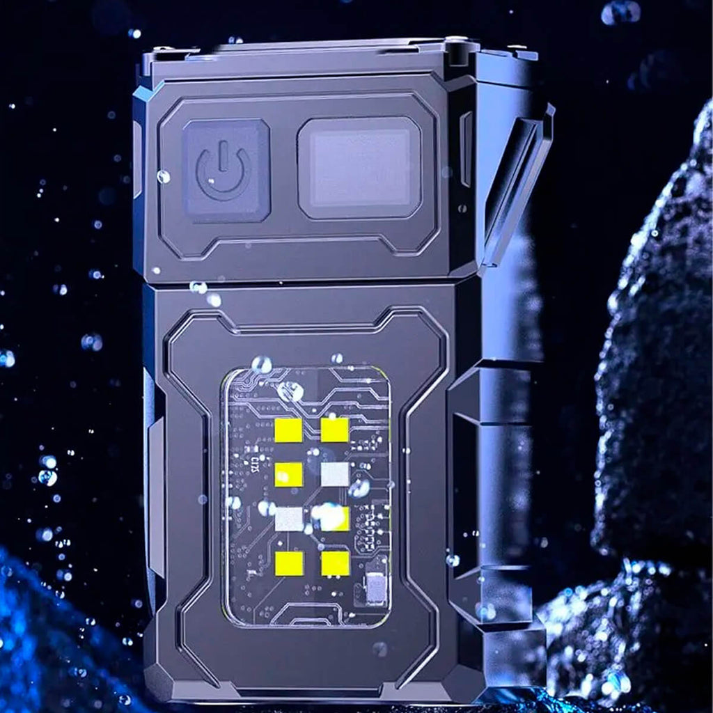 Compacta, versátil e potente, a lanterna multifuncional é ideal para quem busca eficiência e praticidade no dia a dia ou em situações de emergência. Com design flip ajustável, presilha para fixação, ímã para aderência em superfícies metálicas e visor digital, ela proporciona iluminação de alta potência com até 2 LEDs COB. Funciona também como power bank, sendo recarregável via cabo Type-C. Construída com material ABS de alta resistência, possui resistência a quedas de até 1,3 metros e proteção contra respingos (IP45). Uma solução completa para uso em acampamentos, reparos, trilhas e muito mais.