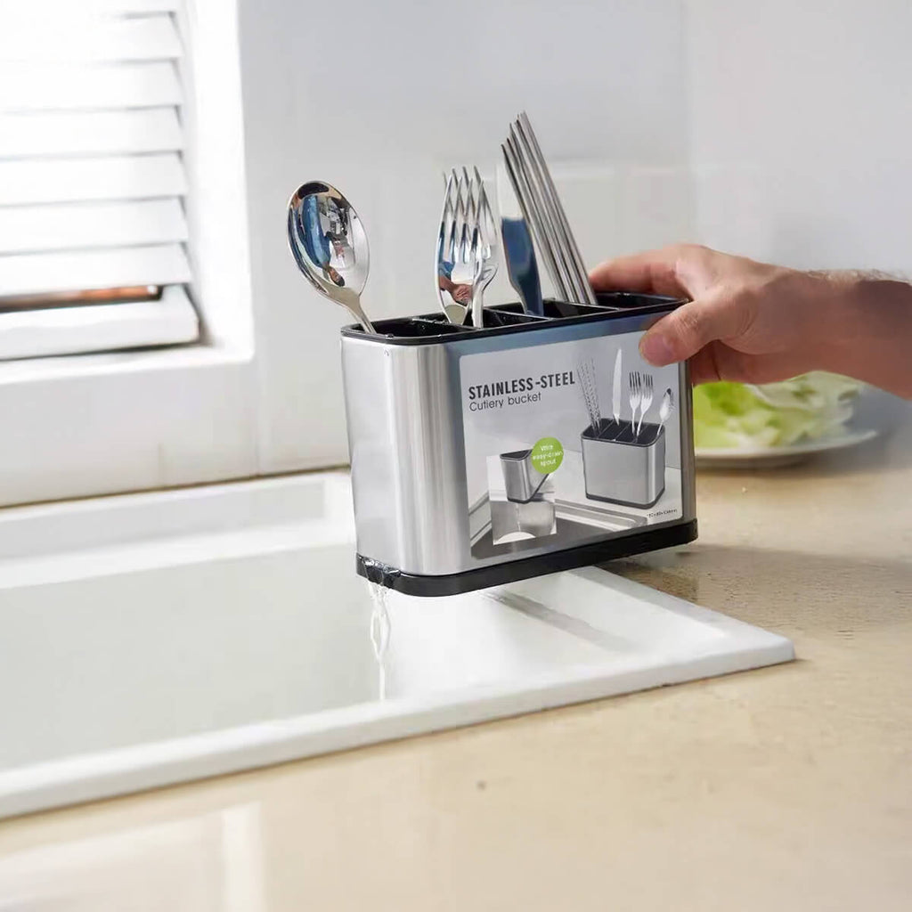 Escorredor Porta Talheres Inox com Drenagem [4 Divisões]