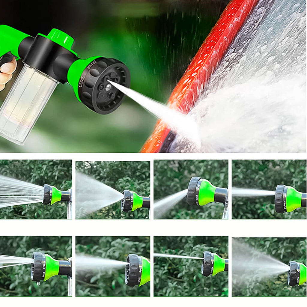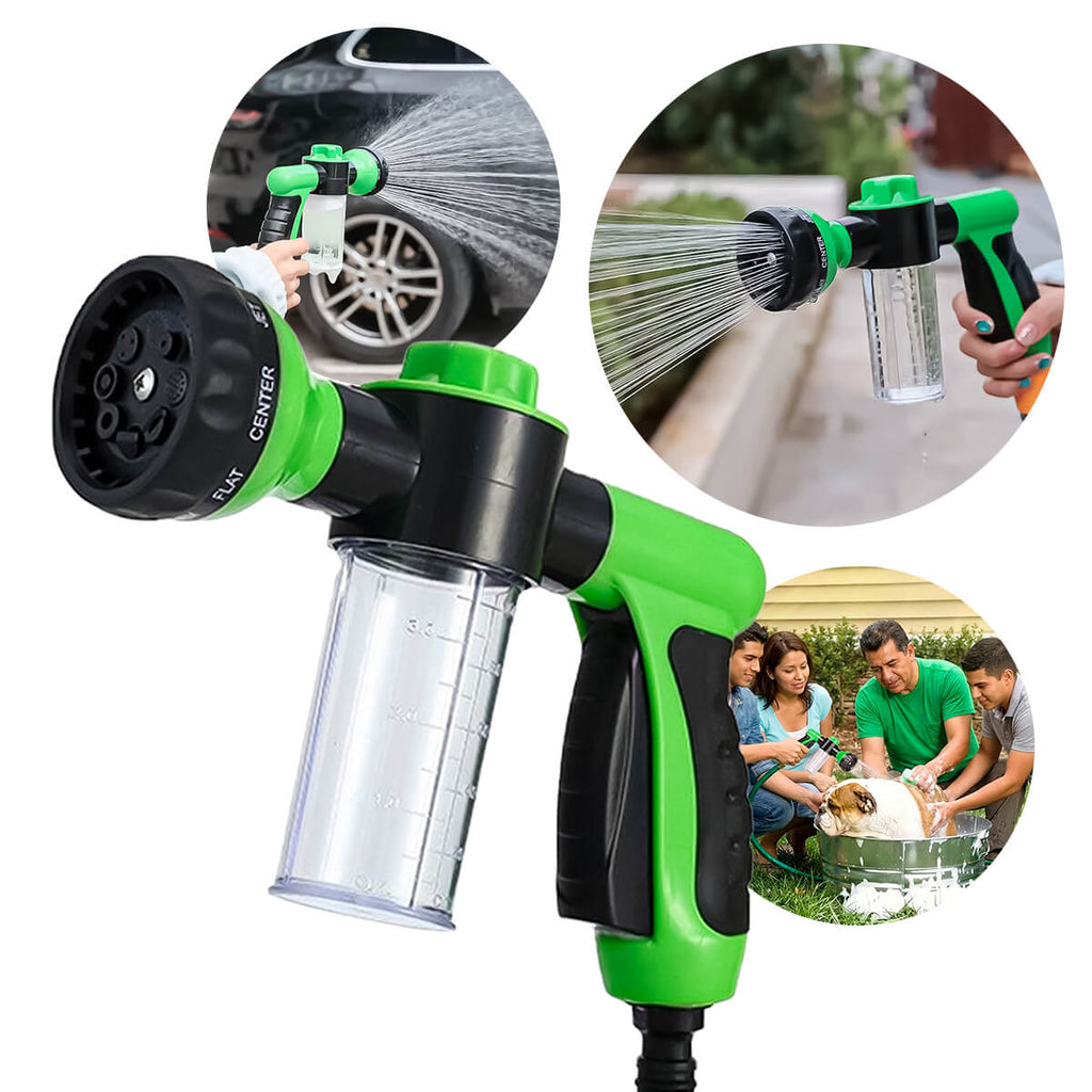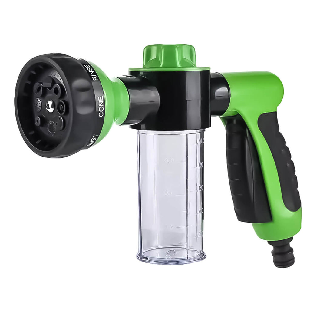 O Esguicho 8 em 1 para Mangueira com Reservatório de Sabão oferece praticidade e alta performance para limpeza doméstica, lavagem de veículos, jardinagem e inúmeras tarefas do dia a dia. Com oito modos de jato selecionados por rotação, ele permite ajustar facilmente o tipo de saída de água conforme a necessidade. O botão de acionamento com um toque proporciona uso contínuo e confortável, enquanto a vazão ajustável garante controle total do fluxo. Possui bico rotativo, ponteira tipo mamadeira e reservatório transparente para sabão, tornando o processo de lavagem mais eficiente e rápido.
