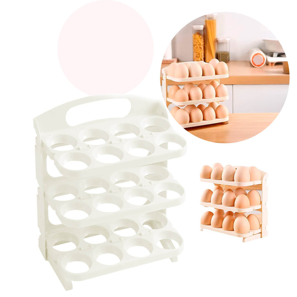 - 1x Porta Ovos Organizador Dobrável 3 Andares para 24 Ovos