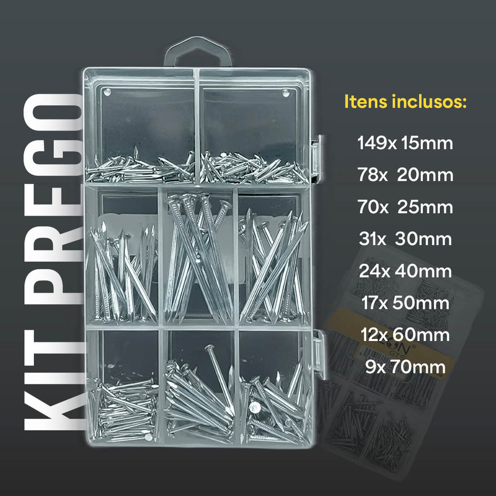 O Kit de Pregos de 15 a 70 mm é a escolha ideal para quem busca qualidade e versatilidade em seus projetos de construção e reformas. Com 390 unidades de pregos feitos em aço de alta resistência, cada item vem com acabamento galvanizado que proporciona maior durabilidade e resistência contra corrosão. Este kit atende tanto profissionais quanto amantes do faça você mesmo, oferecendo tamanhos variados para todas as suas necessidades, desde fixação de painéis até montagem de estruturas e pequenos reparos. Tenha a tranquilidade de saber que, independentemente do seu projeto, você terá sempre o tipo e tamanho de prego adequado à mão. A combinação de qualidade e praticidade torna este kit essencial para qualquer caixa de ferramentas, tornando seu trabalho mais eficiente e organizado.