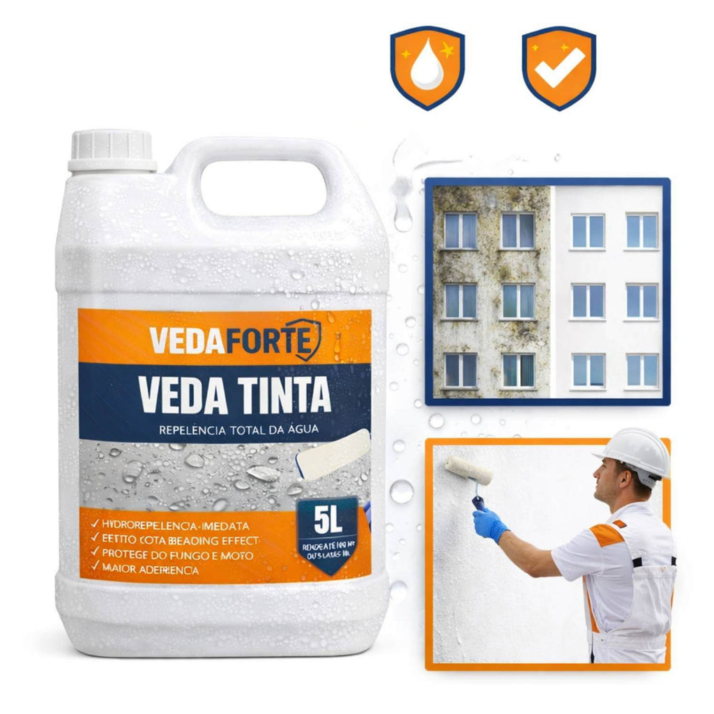 O Veda Tinta Veda Forte é um aditivo impermeabilizante hidrorrepelente solúvel em tinta, desenvolvido para transformar tintas comuns em revestimentos impermeáveis, laváveis e altamente duráveis. Sua tecnologia exclusiva cria uma película invisível com efeito gota (Beading Effect), que impede a absorção de água desde a primeira aplicação. Oferece proteção eficaz contra infiltrações, batida de chuva, umidade, mofo, fungos e sujeiras, prolongando significativamente a vida útil da pintura e preservando o acabamento por muito mais tempo. Pode ser utilizado de duas formas: misturado diretamente à tinta, garantindo proteção já na pintura nova, ou aplicado puro sobre superfícies já pintadas, reforçando a impermeabilização existente. Produto de fácil aplicação, alto rendimento e excelente aderência, indicado para uso interno e externo em ambientes residenciais, comerciais e industriais. Fórmula ecologicamente correta, isenta de amoníaco, com ação fungicida e antimofo.