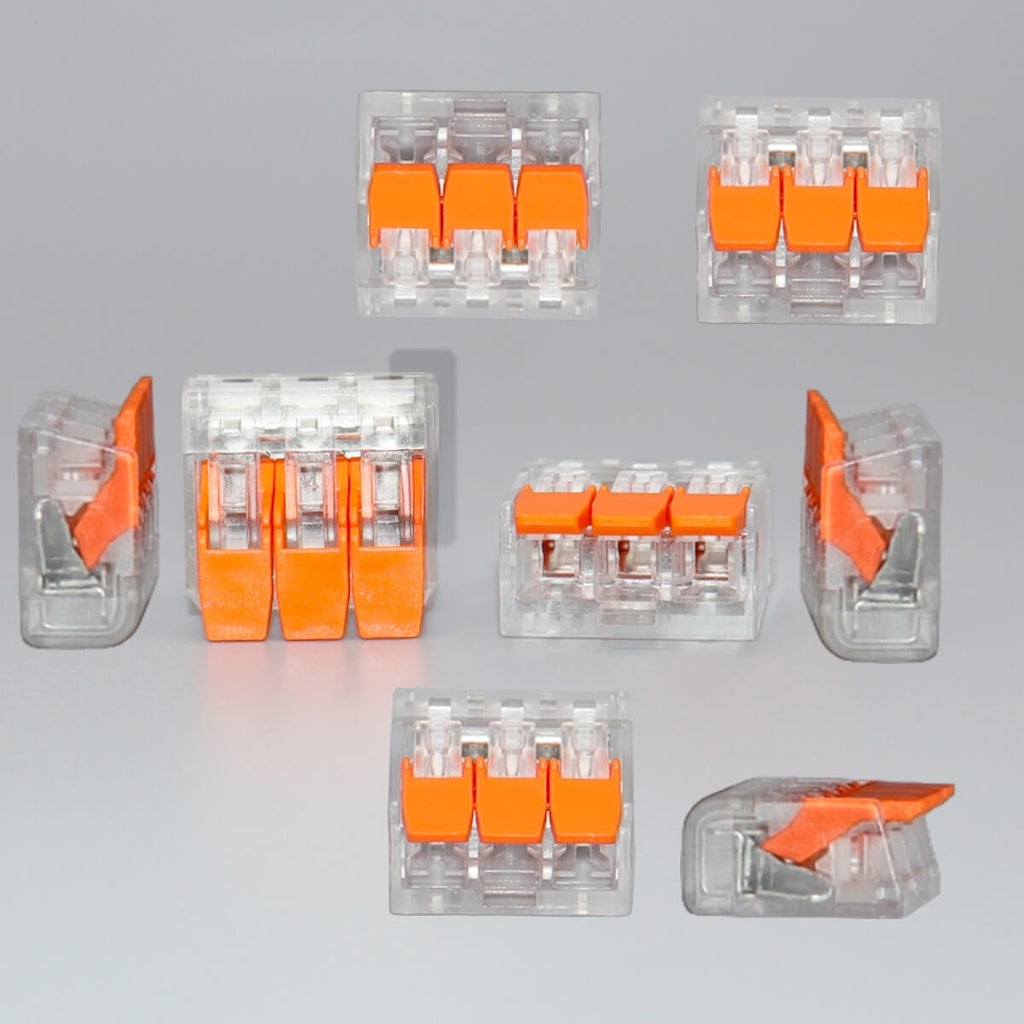Conector de Emenda Rápida 3 Vias com corpo transparente ideal para quem busca praticidade, segurança e ordem nas instalações elétricas. O design cristal permite visualizar claramente o encaixe dos fios, garantindo que a conexão foi feita corretamente. A travamento por pressão dispensa o uso de ferramentas, tornando a instalação rápida e segura. Compatível com condutores rígidos e flexíveis, o conector garante contato firme, confiável e duradouro indicado para aplicações residenciais, comerciais ou industriais.