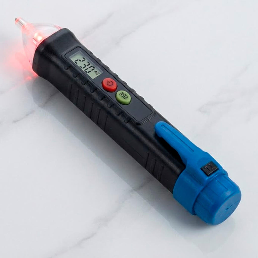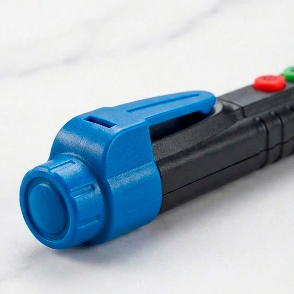 A Caneta Detectora de Tensão é uma ferramenta prática e segura para identificação rápida de tensão elétrica sem contato direto. Utilizando sensor indutivo de alta precisão, permite detectar a presença de corrente alternada em tomadas, cabos, painéis elétricos, disjuntores e diversos equipamentos, garantindo maior segurança durante manutenções e inspeções. Conta com display LCD em gráfico de barras que indica a intensidade do campo elétrico, além de alerta visual por LED na ponta transparente e aviso sonoro por bip. Possui ajuste de sensibilidade dupla, lanterna integrada para uso em ambientes com pouca iluminação e desligamento automático para economia de energia. Seu design compacto, com clipe de bolso, facilita o transporte e o uso profissional ou doméstico. Fabricada com ponta em polímero transparente de alta resistência, oferece durabilidade e confiabilidade em aplicações internas.
