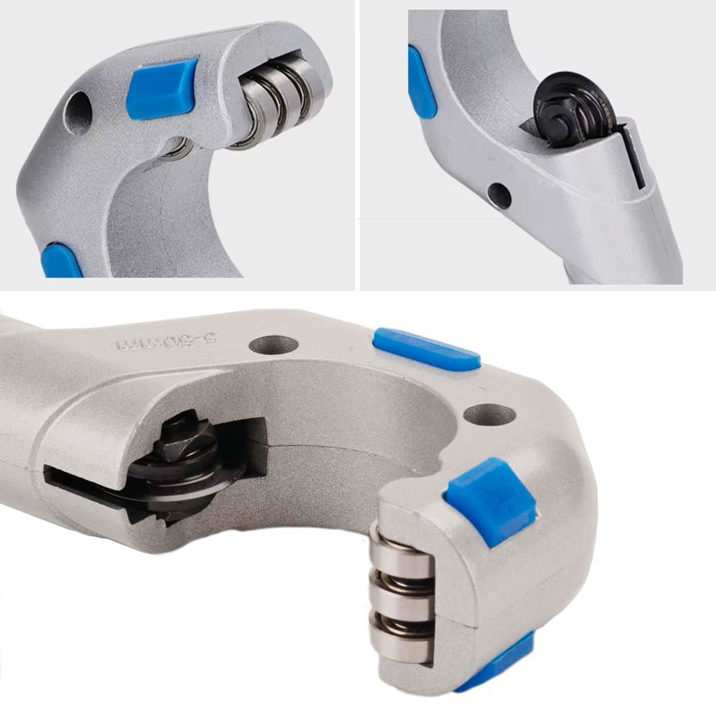 O Cortador de Tubos com Rolamento 5-50mm foi desenvolvido para oferecer cortes precisos, rápidos e uniformes em tubos de cobre, ferro e aço inoxidável. Ideal para profissionais das áreas de HVAC/R, encanamento e reparo automotivo, é uma ferramenta essencial que combina durabilidade, desempenho e praticidade. Sua lâmina afiada de aço liga de alta qualidade proporciona cortes de alta velocidade e acabamento limpo, enquanto o rolamento de rolos cônicos (modelo 696ZZ) garante suavidade no movimento e maior estabilidade durante o uso. Com estrutura reforçada e empunhadura ergonômica, o cortador é resistente e fácil de operar, permitindo cortes precisos em tubos com diâmetro de 5 a 50 mm (1/4" a 2"). Uma ferramenta indispensável para quem busca eficiência e qualidade profissional em seus trabalhos.