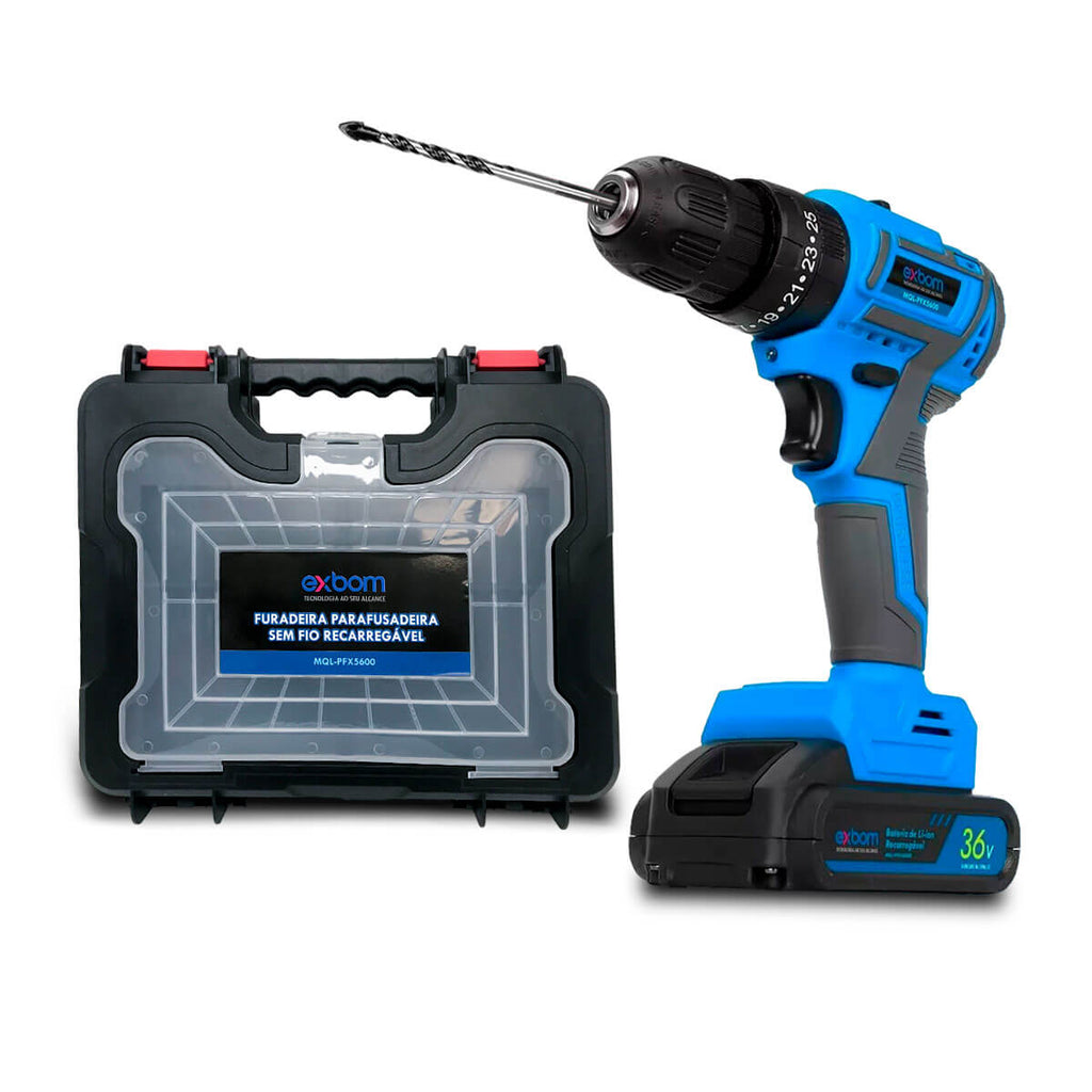 A furadeira parafusadeira recarregável portátil projetado com design ergonômico proporciona conforto durante longas sessões de trabalho, ele é uma ferramenta elétrica versátil e conveniente projetada para perfurar buracos e fixar parafusos que maximiza a eficiência no local de trabalho. Ela é alimentada por uma bateria recarregável, o que permite maior mobilidade durante o uso. Ela possui controle de velocidade variável e controle de torque ajustável, permitindo ajustar de acordo com o tipo de tarefa e material e a velocidade de rotação.