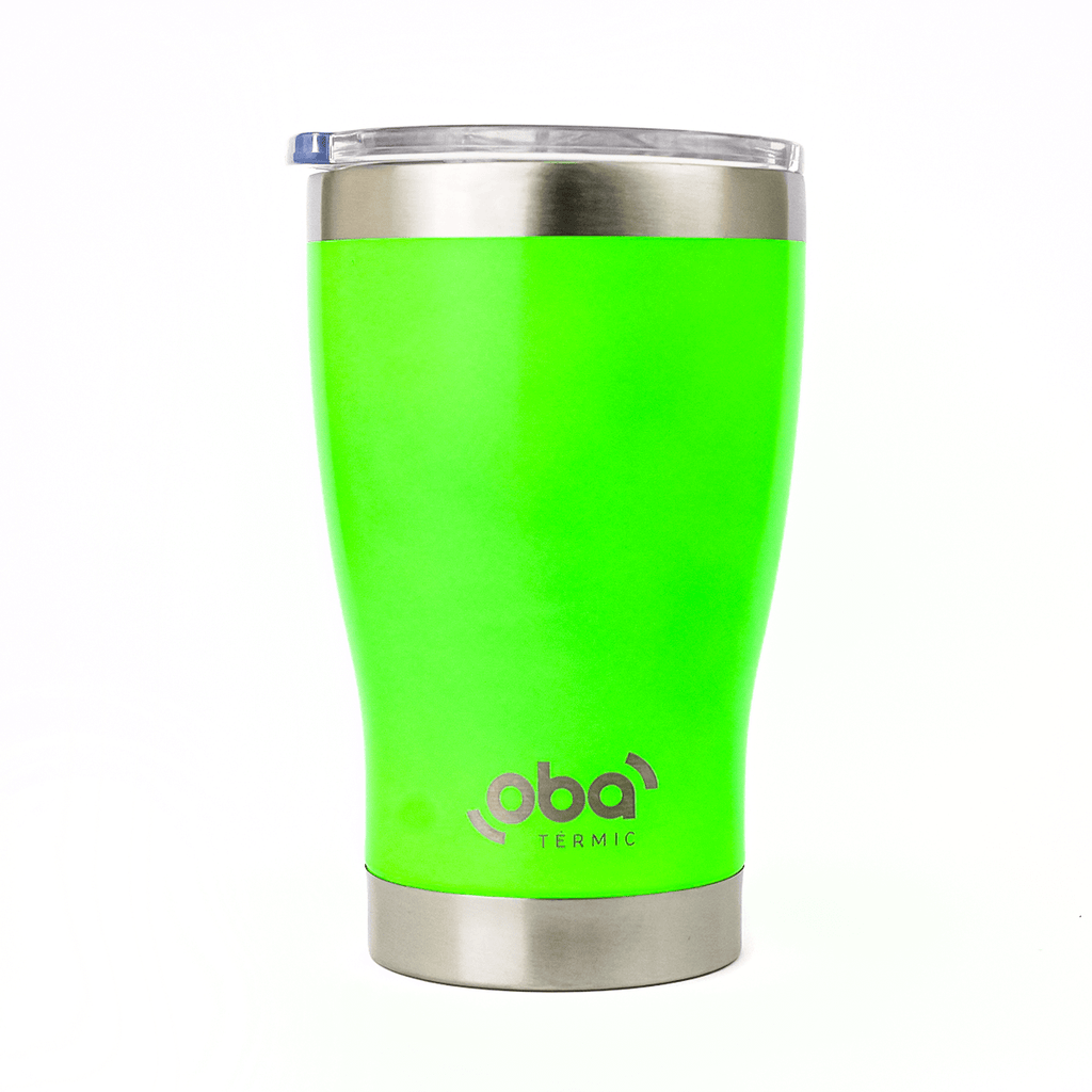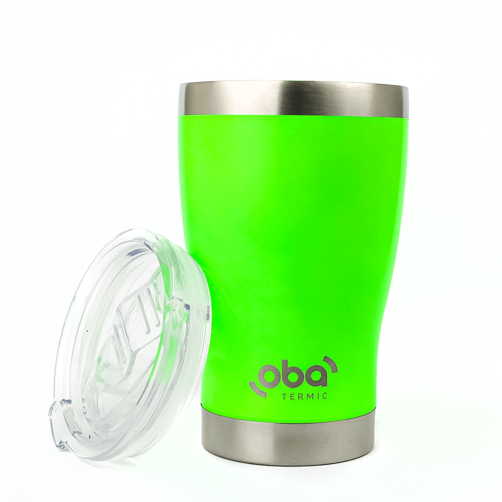 O copo térmico de aço inoxidável Oba Térmic com capacidade de 473ml possui tecnologia de parede dupla e sistema de isolamento a vácuo em seu interior, garantindo eficiência térmica máxima, alta resistência e impedindo a formação de suor do lado externo, mantendo sua bebida gelada ou aquecida por muito mais tempo!