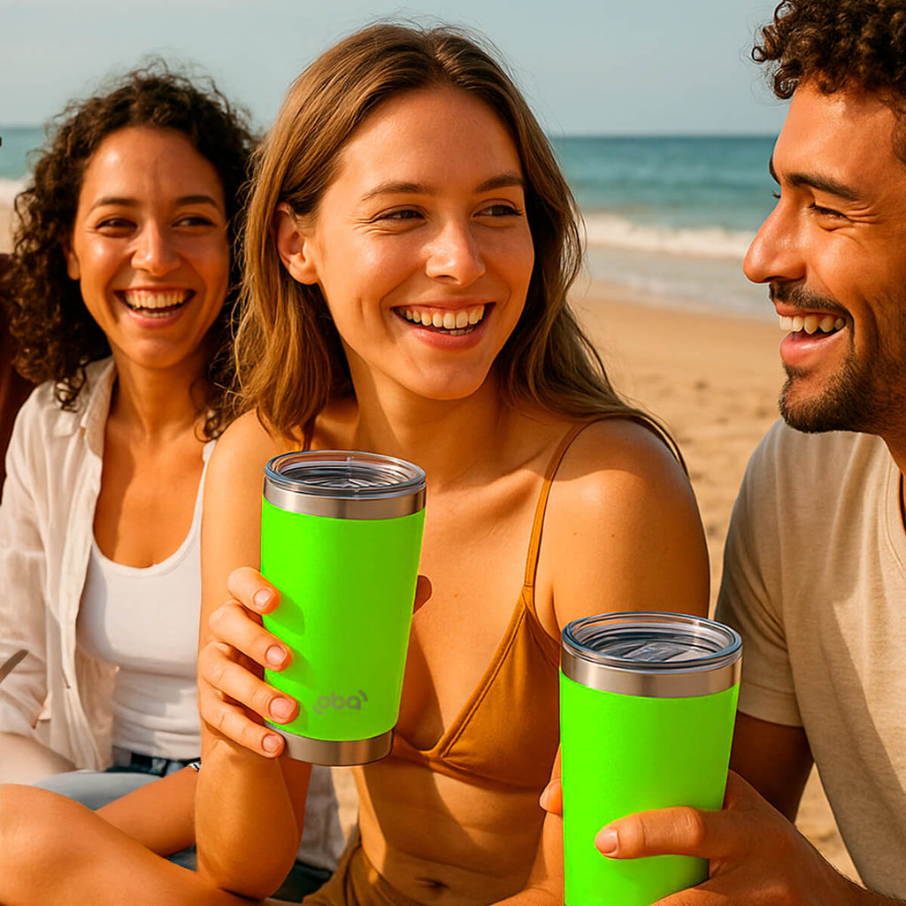O copo térmico de aço inoxidável Oba Térmic com capacidade de 591ml possui tecnologia de parede dupla e sistema de isolamento a vácuo em seu interior, garantindo eficiência térmica máxima, alta resistência e impedindo a formação de suor do lado externo, mantendo sua bebida gelada ou aquecida por muito mais tempo!