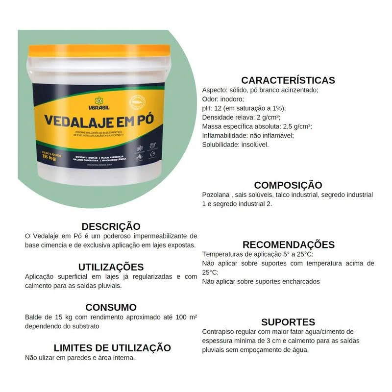- Vbrasil Vedalaje em Pó 15kg Para Construção Civil