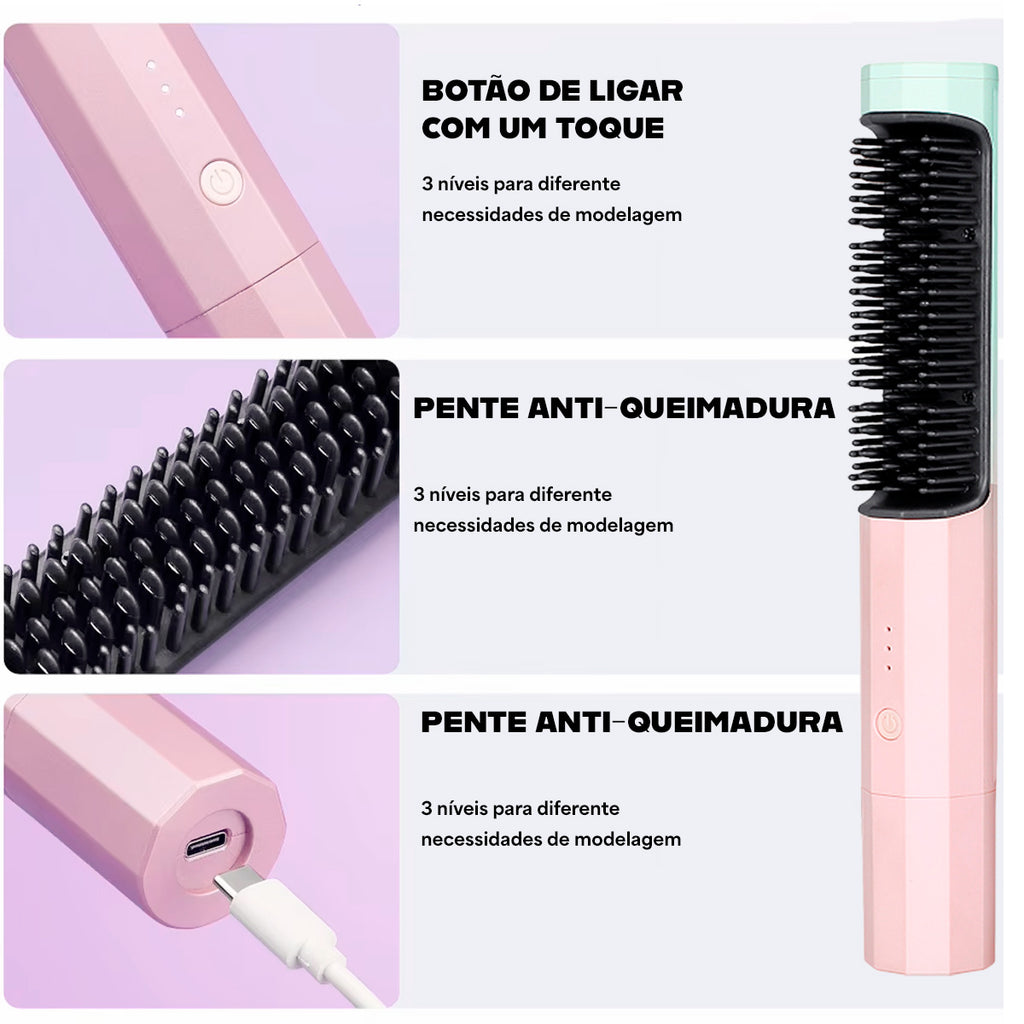 - 1x Escova Alisadora Sem Fio