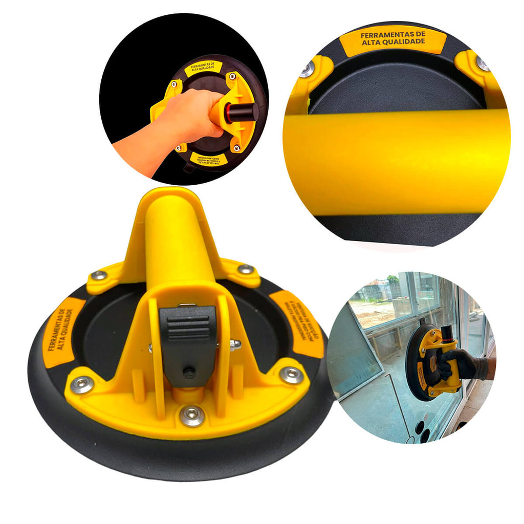 A Ventosa de Sucção a Vácuo Profissional para Piso é a solução ideal para o manuseio, posicionamento e instalação de objetos pesados com segurança e precisão. Projetada para uso profissional, oferece alta capacidade de sucção e excelente vedação, permitindo a movimentação de peças grandes sem esforço excessivo, indicada para pisos, vidros, porcelanatos, cerâmicas, chapas lisas e outras superfícies não porosas. Equipada com disco de borracha espesso e sistema de bombeamento de ar eficiente, garante fixação firme em superfícies lisas, mantendo a estabilidade durante o uso. O cabo ergonômico com alça antiderrapante proporciona conforto e controle, mesmo em aplicações contínuas.
